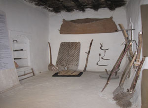 وغرفة الحماة، المرأة العجوز التي تَهزُّ سرير حفيدها ومن حولها(الكناين)، ويبدو المشهد رائعاً من خلال خلفية غنية بالسجاد العجميّ، والأثاث الإيرانيّ، والخزف الصيني، والحياكة العربيّة، ثُمّ قاعة العروس بنسائها الأربع وأزيائهنّ التقليديّة يحملن العروس ليلة(خلوتها) ومعها (الماشطة والمغنيّة) والأهل والأقارب. إلى جانب تلك الغرف والقاعات، قاعة الإستقبال، وعمرها مائة سنة، والحمام الشعبيّ في مظهره التقليديّ، والغرفة الموسيقيّة المزودة بشتى الآلات القديمة(كالعود، والبزق، والفلوت، والطبلة، والربابة). أمّا قاعة الأسلحة ففيها أهم ما إستخدمه العرب من سلاح في حروبهم وغزواتهم كالسيوف والخناجر والبنادق والسكاكين، أمّا بالنسبة لقاعة الضيافة العربيّة، وهي تمثل الإستقبال والكرم، وفيها المهباج ووسائل تحضير القهوة.