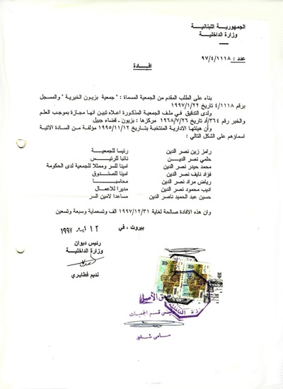 وحديث عن الحاج رامز نصر الدين من أبناء بزيون ـ قضاء جبيل وخدمته لأبناء بلدته في مشاركته في رئاسة جمعية آل نصر الدين الخيريّة. ومنصب مختار للبلدة في أواخر القرن العشرين وغيرها من أعمال البرِّ والإحسان.