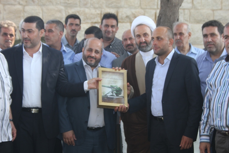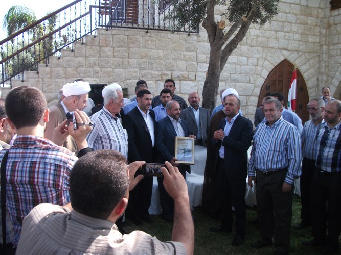 لرئيس البلدية حيث رحبَّ بالضيوف الكرام بإسم الأهالي ودعاهم إلى الطعام وإلى المشاركة مع الجمع الكريم لوضع اكليل من الورود على النصب التذكاري للشهيد حسام خوش نويس في ساحة البلدة التي أصبحت تحمل إسم هذا الشهيد المبارك.