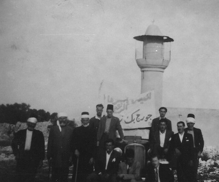 من اليسار الحاج عبد الكريم محمد علي عمرو، والحاج توفيق محمد سعد الدين عمرو، عفيف الحلاّني، حسن جعفر عمرو، الحاج حسين الحاج حسن عمرو، عامل من قرية زيتون،الحاج محمد الحاج حسن عمرو، سائق المحدلة حمود قبلان الحلاّني وهومن مواليد قرية المعيصرة.
