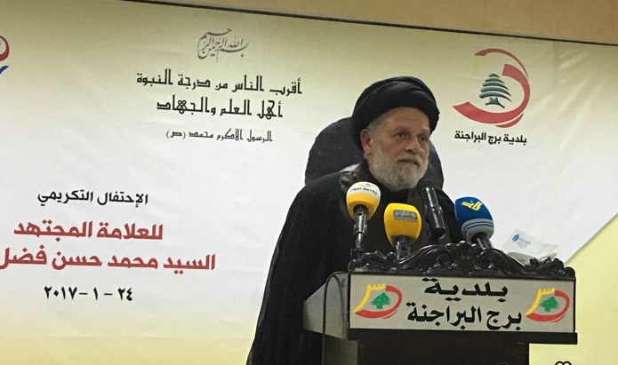 أقامت (جمعية الإمام الصادق ) ، إحياء التراث العلمائيّ وآل فضل الله والمجلس البلدي في برج البراجنة، إحتفالاً تكريمياً لآية الله المرجع السيّد محمد حسن فضل الله (قده)، عصر يوم الثلاثاء الواقع فيه 24 كانون الثانيّ 2017م. حضره حشد كبير من العلماء والمفكرين ورجال الأدب والسياسة والأمن يتقدّمهم النائب السيّد حسن فضل الله، النائب الحاج علي فضل عمّار، ممثل المرجع آية الله السيّد الحكيم (دام ظله) نجله العلاّمة السيّد حيدر الحكيم، ممثلون عن المجلس الإسلاميّ الشيعيّ الأعلى، عن جامعة المصطفى، عن الحوزات الدينيّة في لبنان، عن حزب الله، عن حركة أمل، المستشار الثقافيّ للجمهوريّة الإسلاميّة الإيرانيّة السيّد شريعتمدار وغيرهم من الشخصيات الكريمة.