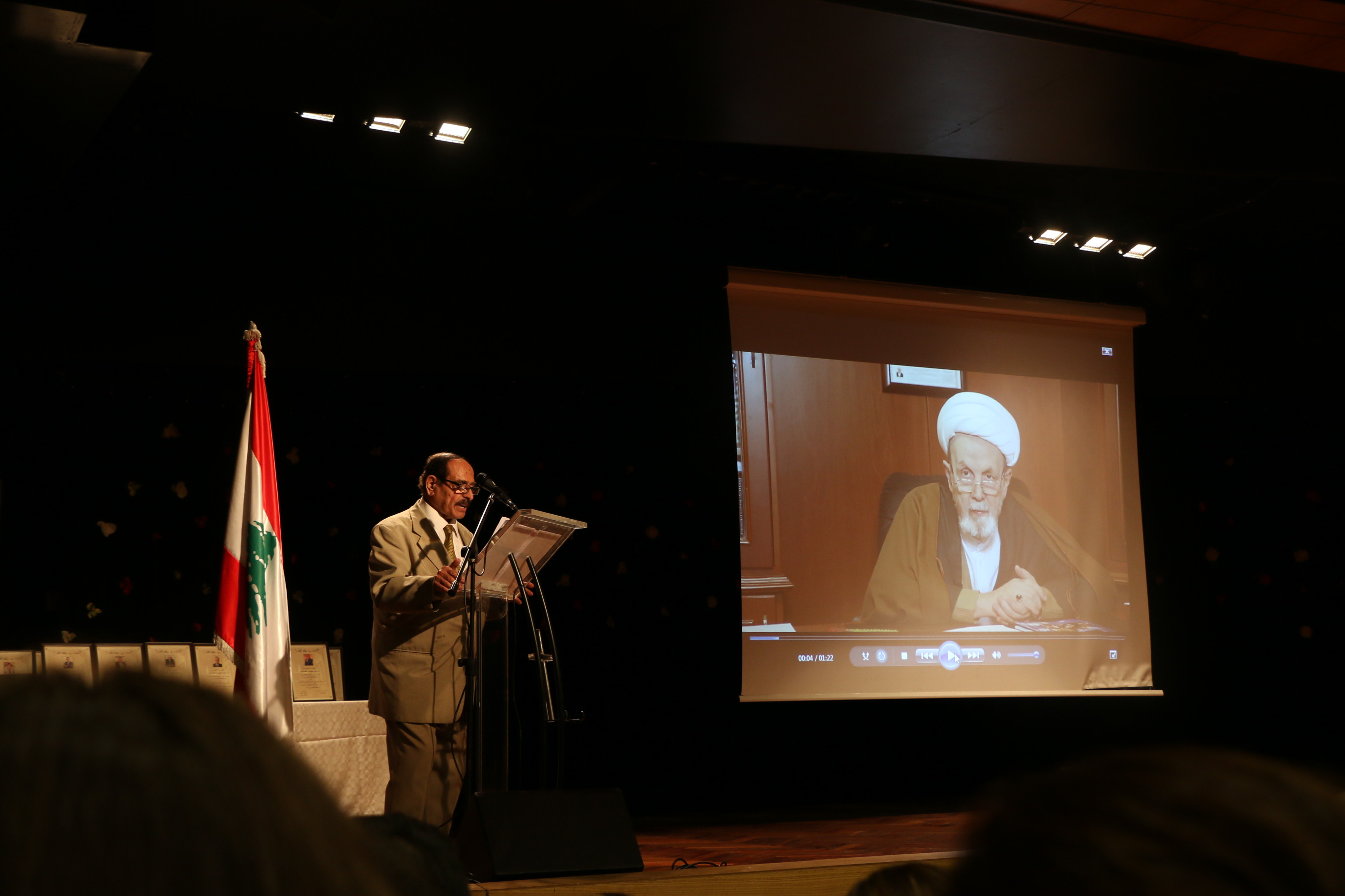 وإنني بإسم سماحته أتقدّم بالشكر الجزيل للأخ العزيز الإعلاميّ الناجح أنطون فضّول ولفريق عمله والشكر الجزيل للأخوة المُكرّمين الأعزاء جميعاً ونتمنى التوفيق لكم والتقدّم والإزدهار للوطن العزيز لبنان.