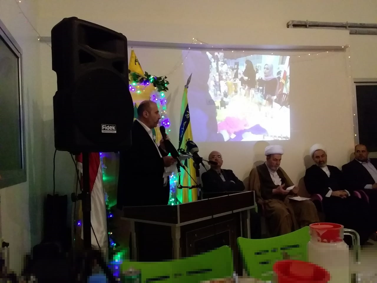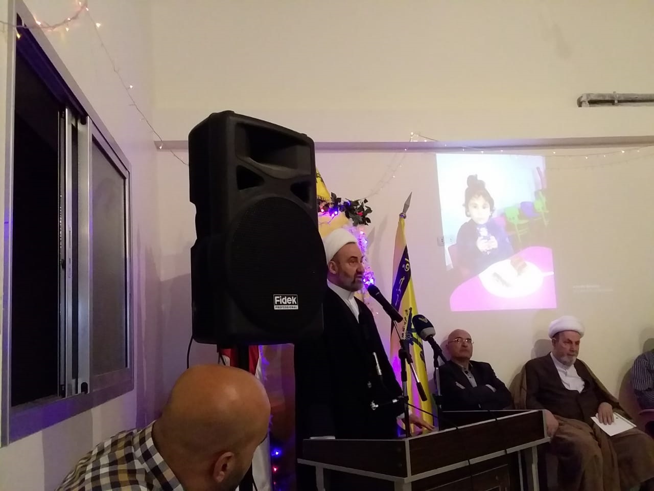 عريفة الإحتفال كانت المربيّة آية أحمد، وقد تكلّم مدير المركز الأستاذ حسين حيدر أحمد شاكراً الحاضرين لتلبيتهم الدعوة. ثُمّ تكلّم بالمناسبة سماحة الشيخ محمد حسين عمرو من وحي المناسبة.
