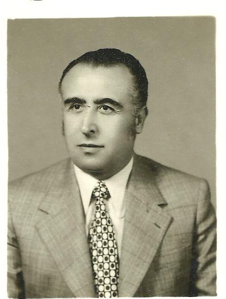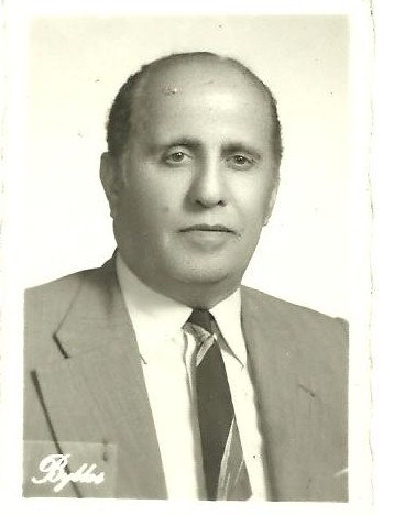 وأمّا عن المرحوم والده فيقول: أنّه من مواليد مدينة جبيل في عام 1921م. درس في مدرسة الأخوة المريميين في جبيل. توظف في مصلحة سكة الحديد عام 1949م. تقريباً ثُمّ إنتقل للعمل بعدها في وزارة الأشغال العامّة عام 1953م. وحتى بلوغه سن التقاعد. وآخر منصب شغله كان رئيس دائرة صيانة أبنية الدولة الرسميّة في محافظة جبل لبنان إلى أن تقاعد عام 1885م. رزقه الله تعالى المهندس قاسم وطبيب الأسنان عاصم الذي توفاه الله تعالى بحادث في عام 1991م. والآنستان منيرة مُعلّمة في المدرسة الرسميّة ومنى وهي موظفة سابقة في «أدكوم» بنك.
