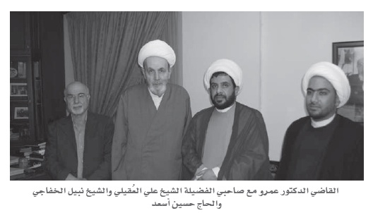 عصر يوم السبت الواقع في 24 أيلول 2011م. زار القاضي الدكتور عمرو في منزله في جبيل وبحضور الحاج حسين أسعد ممثل مؤسسة العلاّمة المرجع السيّد محمد حسين فضل الله{، وفد من مكتب السيّد الشهيد الصدر{، في بيروت ضمّ صاحبي الفضيلة الشيخ علي العقيلي والشيخ نبيل الخفاجي وقدما له مجموعة قيّمة من مؤلفات الشهيد{، فشكرهم على هذه البادرة الطيبة وأطلعهم على مشروع المركز الإسلاميّ التابع لجمعية المبرّات الخيريّة وحدّثهم عن ذكرياته عن السيّد الشهيد الصدر{، وأهداهم مذكراته وهي تحت عنوان»التذكرة أو مذكرات قاضٍ» وفيها كلام عن ذكرياته عن استاذيه الشهيدين السعيدين الصدرين طيب الله تعالى ثراهما الشريف وقدس الله روحيهما. آمين.