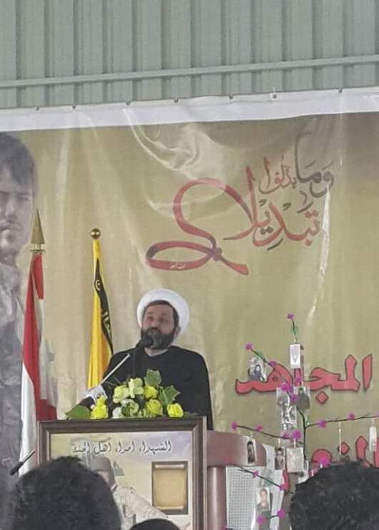 ثُمّ تكلّم سماحة العلاّمة الشيخ محمد يزبك منوهاً بشهادة الشهيد محمد عبد المنعم عمرو في سبيل الله تعالى، وَحُبَّاً بوطنه ومجتمعه ودفاعاً عن كرامة الوطن وكذلك كان حال سائر الشهداء الأبرار الّذين قدّموا كرامة الوطن وعزّته على حياتهم. وأضاف أنّ الحرية والسيادة والإستقلال هي أمل اللبنانيين وتحرير أرضنا في الجنوب والدفاع عن الوطن ضد التكفيريين في لبنان وخارجه كان دافعه الحب لإنّ إمامنا جعفر الصادق (ع)، يقول: وهل الدين إلاّ الحًبّ. ولعلَّ هذا يكون داعياً للحفاظ على كرامة اللبنانيين ضد الإرهاب والتكفيريين. والحياة المطلوبة هي التي نريدها ونصنّفها هي حياة العزّة والكرامة والإستقلال. ولسنا نحن هواة موت أو أن ثقافتنا هي ثقافة الموت. بل نحن طلاب العزَّة والكرامة والإستقلال والذي يؤمن أنّ محبّة النّاس والدفاع عنهم هي من محبّة الله تعالى، بمصالحه فقط فهو صاحب ثقافة الموت. وأمّا شهداؤنا فهم يحملون ثقافة محبة الله والنّاس مصداقاً لقوله تعالى: } مِنَ الْمُؤْمِنِينَ رِجَالٌ صَدَقُوا مَا عَاهَدُوا اللَّهَ عَلَيْهِ فَمِنْهُم مَّن قَضَى نَحْبَهُ وَمِنْهُم مَّن يَنتَظِرُ وَمَا بَدَّلُوا تَبْدِيلًا{ سورة الأحزاب، آية 23.