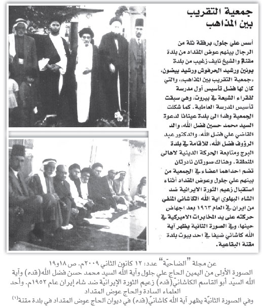 خطأ مجلة الضاحية في تاريخ الثورة الإيرانية الآنفة الذكر فهي كانت في عام ا952 وليس في عام ا963 وفي اسم آية الله السيد محمد حسن فضل الله (قدس سره).