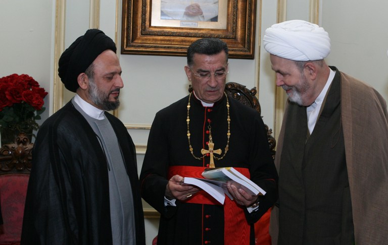 قام العلّامة السيّد علي فضل الله بزيارة البطريرك الكاردينال، مار بشارة بطرس الراعي، في الصرح البطريركي في بكركي في 7 كانون الأوّل 2012م، وذلك على رأس وفد ضمَّ كلاً من: الدكتور الشيخ يوسف محمد عمرو قاضي جبيل الجعفريّ، رئيس مركز الحوار بين الأديان في مؤسَّسة المرجع الراحل السيّد فضل الله الشيخ حسين شحادة، المستشار السياسي الإعلامي هاني عبد الله، مسؤول الإشراف الديني في جمعية المبرات الخيريَّة الشيخ فؤاد خريس، رئيس دائرة التبليغ الديني في المؤسَّسة الشيخ حسن حلال، والحاج حسين أسعد مسؤول مؤسسة العلاّمة المرجع السيّد فضل الله في جبيل والشمال.