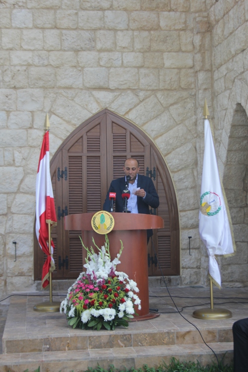 لرئيس البلدية حيث رحبَّ بالضيوف الكرام بإسم الأهالي ودعاهم إلى الطعام وإلى المشاركة مع الجمع الكريم لوضع اكليل من الورود على النصب التذكاري للشهيد حسام خوش نويس في ساحة البلدة التي أصبحت تحمل إسم هذا الشهيد المبارك.