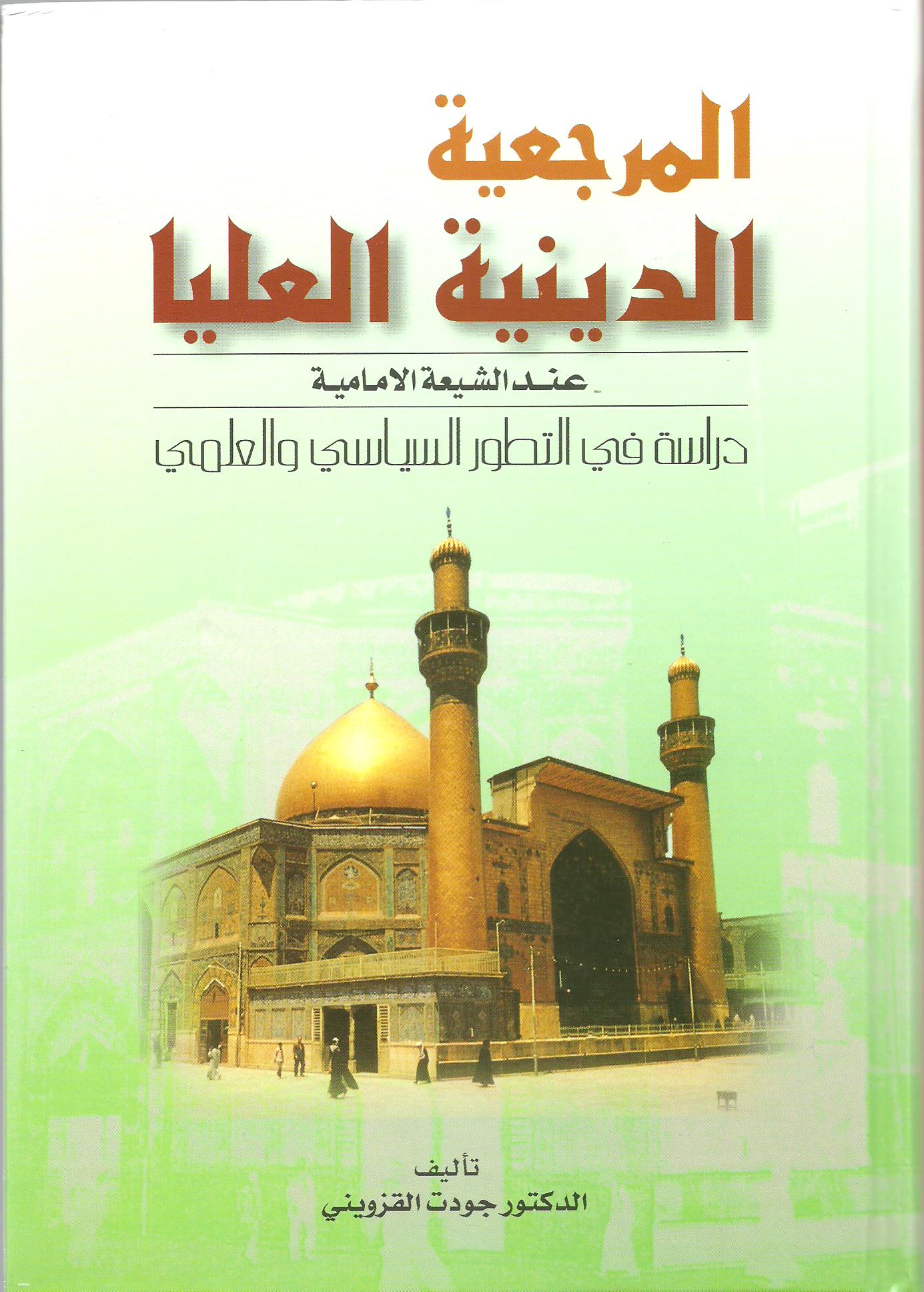 تأليف المؤرخ الدكتور جودت القزوينيّ وهو مؤلف من مقدّمة وستة فصول وثمانية ملاحق. ومما جاء في مقدمة المؤلف، سابعاً:«إختصّ كتاب «المرجعية الدينيّة العليا» بدراسة دور الفقيه عبر العصور ضمن جهوده السياسيّة والعلميّة دون الدخول بتفصيلات تاريخ المرحلة التي عاش فيها وخبرها وتفاعل معها، إلاّ ما اقتضت إليه الملازمة التي لا يمكن الإنفكاك عنها. أمّا في كتاب «تاريخ المؤسسة الدينيّة الشيعيّة» فقد توّسع البحث فيها إلى دراسة الحوادث التاريخيّة بشكل متداخل لا يخلو من التعقيد على غير المتمرّس النقّاد أو المتخصّص، ممّا يخرجه عن دراسة الفقهاء وجهودهم إلى دراسة تاريخ الشيعة عبر العصور».